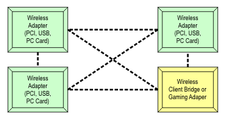 - Client wireless adapter that can bridge more than one MAC address. Used for connecting more than one computer via a single wireless link to an infrastructure access point.